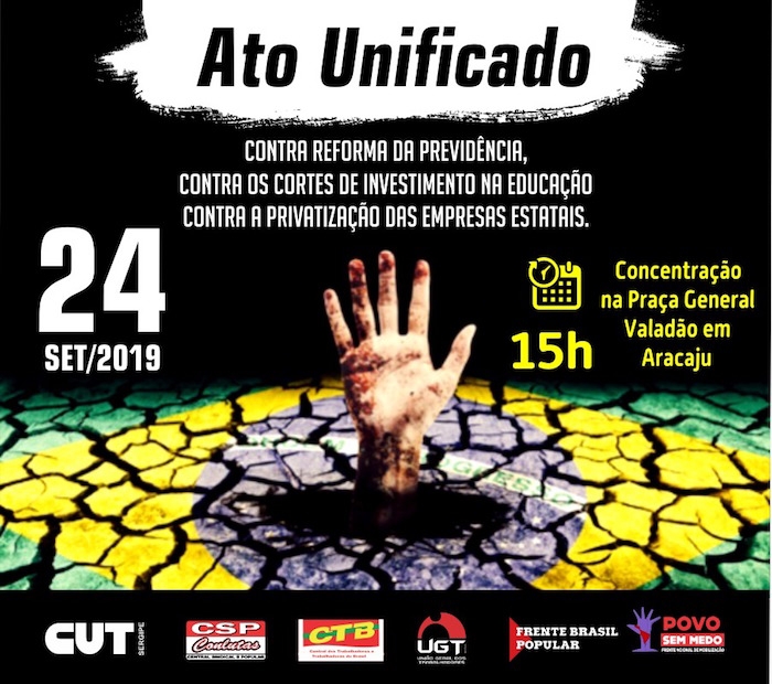 Com concentração às 15h desta terça-feira (24), na praça General Valadão, as centrais sindicais CSP-Conlutas, CUT, CTB e UGT junto às Frentes Brasil Popular e Povo Sem Medo convocam a sociedade e movimentos sociais para mais um dia de luta.