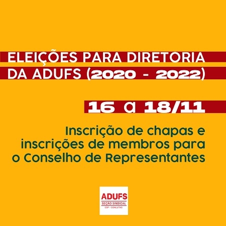 No dia 19/11, quinta-feira, pelo site da ADUFS, será feita a divulgação das chapas inscritas.