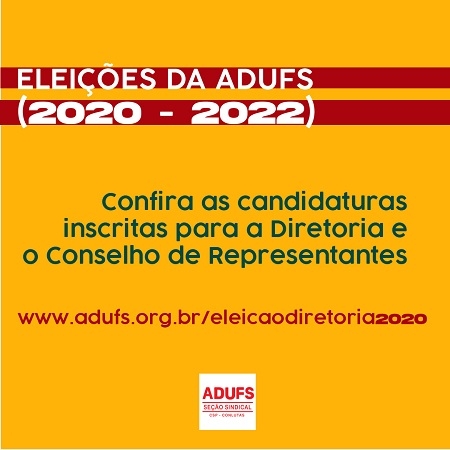Em conformidade com o calendário das eleições da ADUFS (biênio 2020-2022), a Comissão Eleitoral divulgou, na tarde dessa quinta-feira, 19/11, a lista de chapas inscritas para a Diretoria e o Conselho de Representantes da entidade.