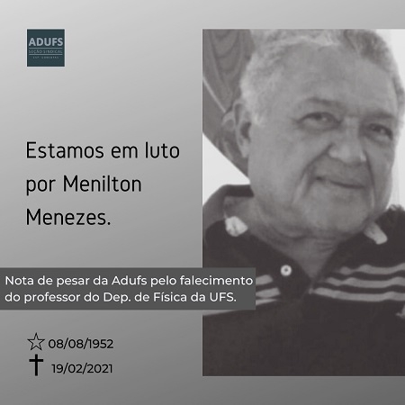 Com tristeza, comunicamos o falecimento de Menilton Menezes, professor do Departamento de Física da UFS. Menilton, que era associado à ADUFS e presença constante nas discussões da categoria, estava internado há um mês e faleceu em decorrência da Covid-19.
