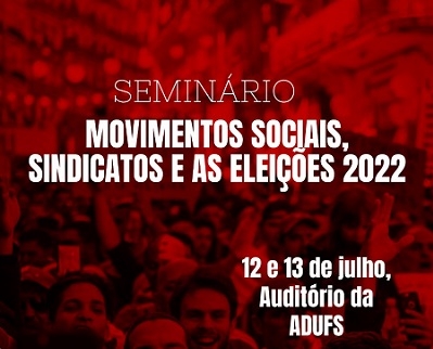 Essas e outras questões estarão em debate no Seminário Movimentos Sociais, Sindicatos e Eleições, que acontecerá nos dias 12 e 13 de julho, no auditório da ADUFS.