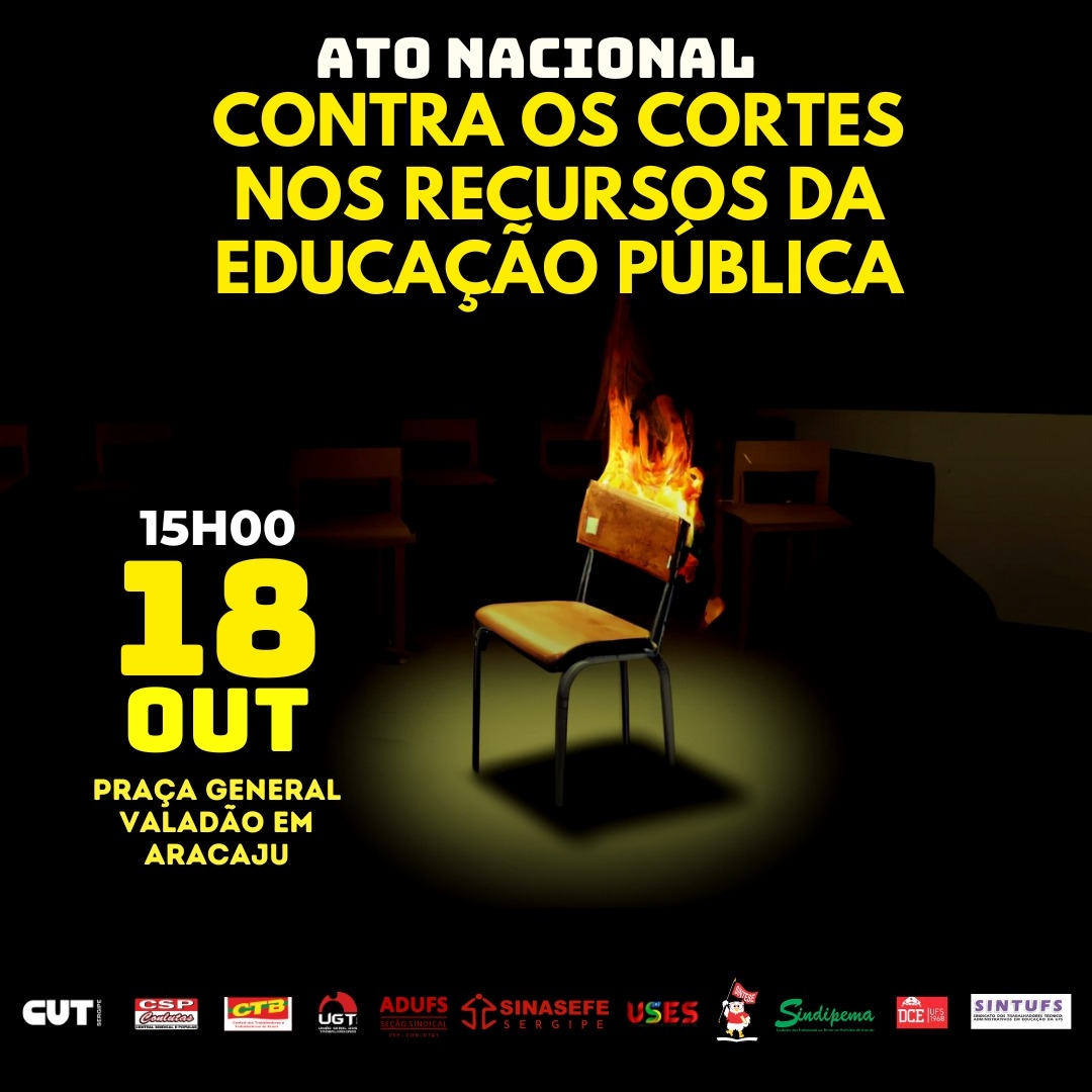 Entidades nacionais vão às ruas nesta terça-feira, 18 de outubro, Dia Nacional de Luta contra o Confisco das Verbas da Educação. Em Sergipe, a mobilização está sendo organizada por diversas organizações, entre elas a ADUFS.
