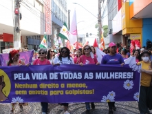 Neste ano, o mote trazido para as ruas foi "Pela vida de todas as mulheres, nenhum direito a menos. Sem anistia para golpistas", que reforça a urgência de lutar contra as ameaças à Democracia e contra os retrocessos políticos dos últimos anos, que atingiram especialmente as mulheres mais pobres.
