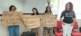 “Não existe cultura indígena sem território. Por isso é importante estarmos aqui hoje, como também estamos em Brasília reivindicando a derrubada dessa tese. Precisamos pressionar e gritar mesmo, o que queremos é demarcação e não marco temporal!”, afirmou Carleane, estudante e integrante do Coletivo José Apolônio.